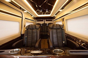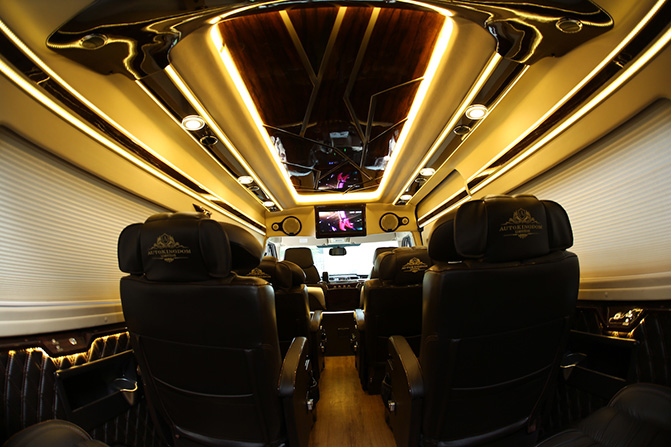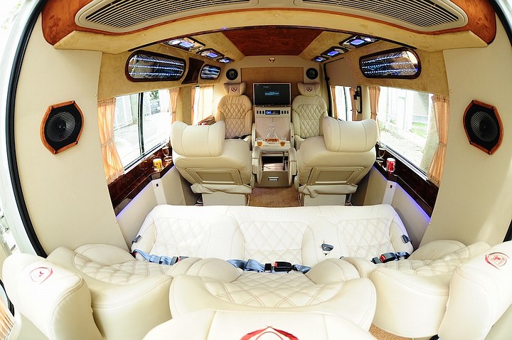 - Limousine 9 leather seats with seat-belt, wooden paneled
