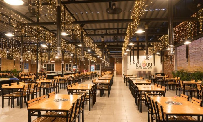 Nếu bạn đã chán phong cách gọi món truyền thống thì lựa chọn một bữa trưa theo phong cách buffet đồ nướng cũng là gợi ý hay ho dành cho bạn và gia đình nhé! Không gian quán rất rộng đủ để phục vụ các đoàn khách, các hộ gia đình hay nhóm bạn đều thích hợp. Đến đây thường thức bữa trưa bạn có thể thưởng thức các món lẩu hoặc nướng với nguyên liệu đa dạng từ các món thịt bò hảo hạng đến các món hải sản tươi ngon từ vùng biển của Phan Thiết nhé.