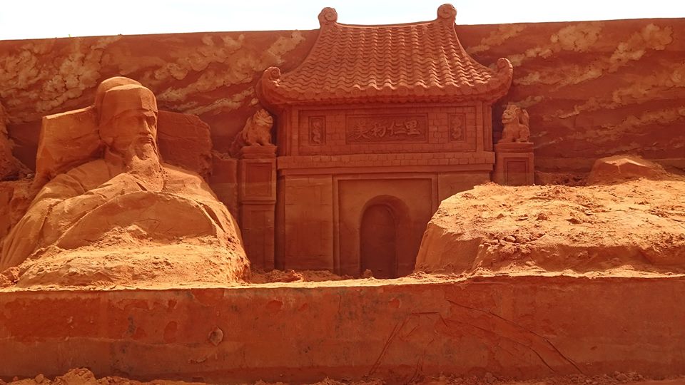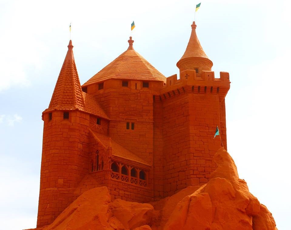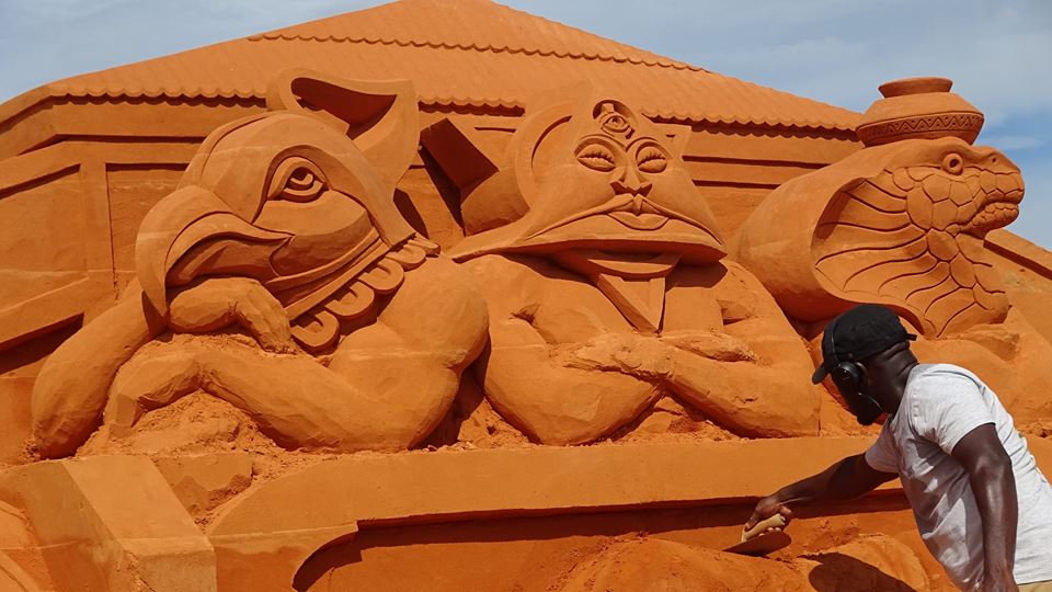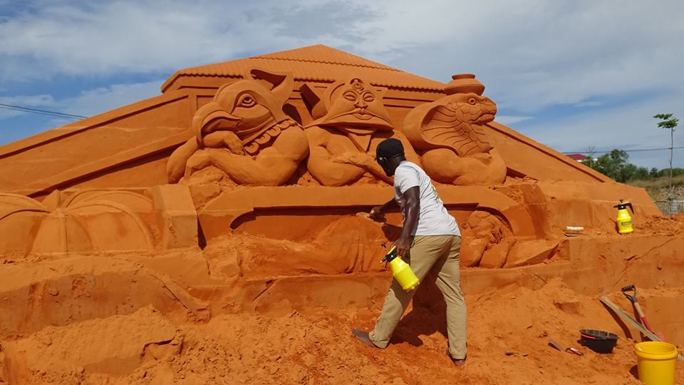 Tượng cát được điêu khắc từ 100% cát tự nhiên, không pha trộn phụ gia và chỉ nhờ sự nén chặt của cát và nước.