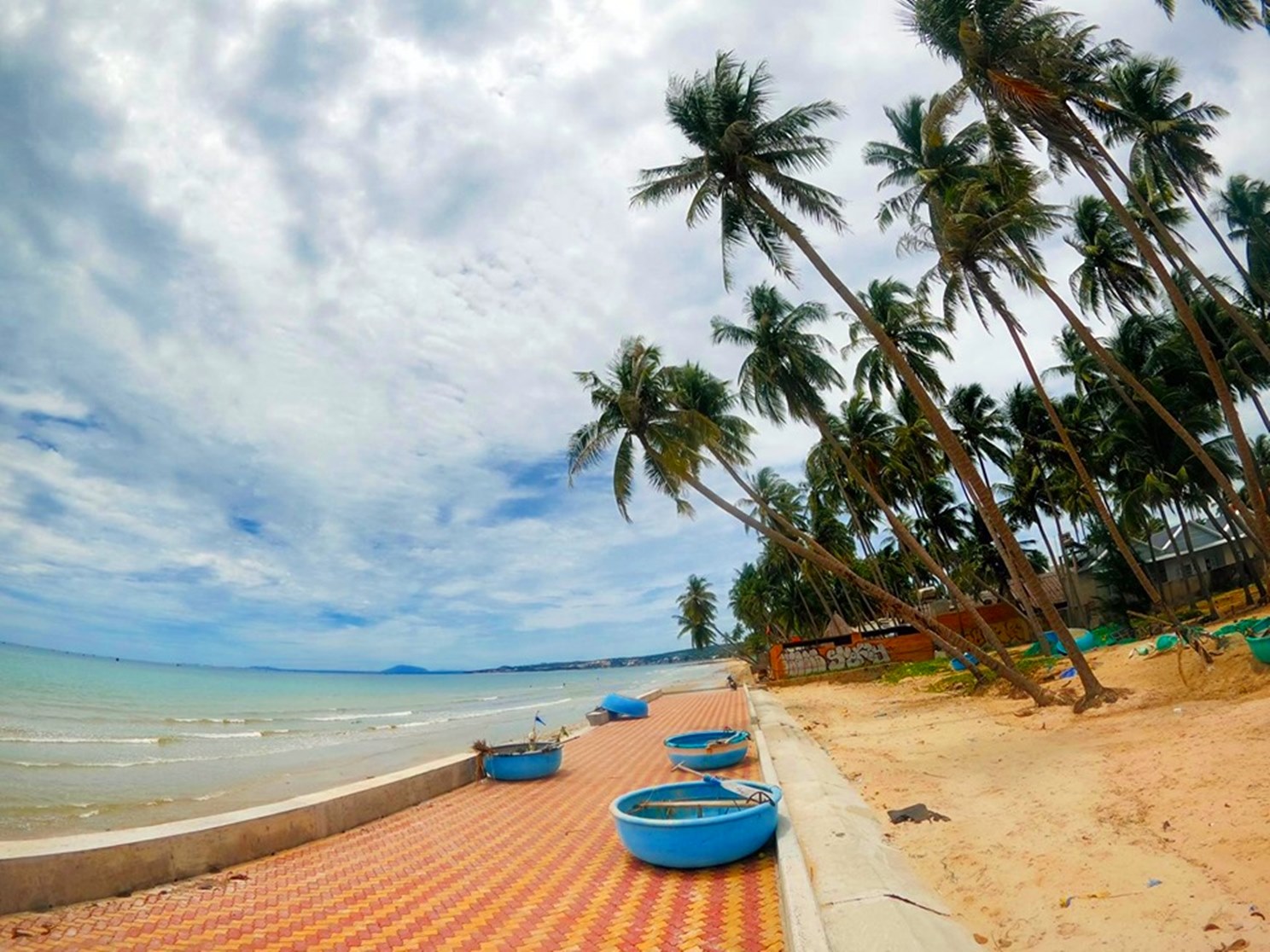 Con đường đi bộ bên bờ biển Hàm Tiến, Mũi Né vừa sạch đẹp trong lành vừa là điểm chụp ảnh sống ảo tuyệt đẹp bên những cây dừa nghiêng huyền thoại.