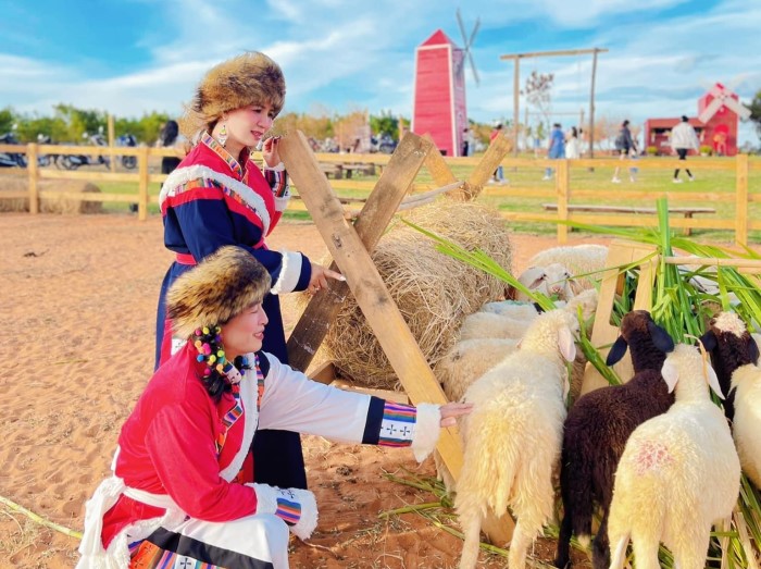 Với phong cảnh tái hiện lại một thảo nguyên mênh mông rông lớn, đến với Mian Farm, du khách sẽ có thể khoác lên mình những bộ trang phục kiểu du mục Mông Cổ nhiều màu sắc cùng với nhiều đạo cụ khác để bạn sống ảo hóa thân thành cô gái thảo nguyên đầy cuốn hút.