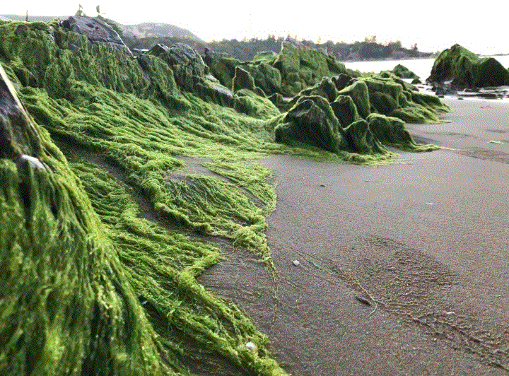 Đến bãi rêu làng chài vào buổi sáng sớm bạn sẽ được thưởng ngoạn một số cảnh đẹp của làng chài nơi đây. Nay là thời gian bắt đầu xuất hiện bãi rêu phủ trên các phiến đá xanh thẳm.