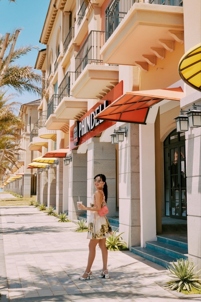 Dạo qua tuyến phố thương mại mặt tiền biển, cư dân địa phương và du khách có thể thưởng thức thực đơn món ngon tại Au Lac do Brazil, xua tan nắng hè với 31 vị kem Mỹ Baskin Robbins mát lạnh, thưởng thức vị trà sữa Đài Loan trứ danh Xing Fu Tang hay nhâm nhi một tách cà phê nồng nàn ở PhinDeli, Gloria Jean’s Coffees.