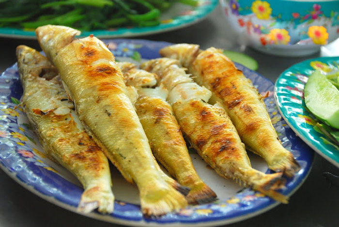 Cá đục nướng là một đặc sản LaGi. Vì thế đến đây, bạn đừng quên thưởng thức hải sản tươi sống vừa được đánh bắt từ biển lên. Những món ăn dân dã nhưng lại được yêu thích, nhất là những du khách ở xa. Tiêu biểu trong đó phải kể đến món mực cơm trứng, cá đục vàng.