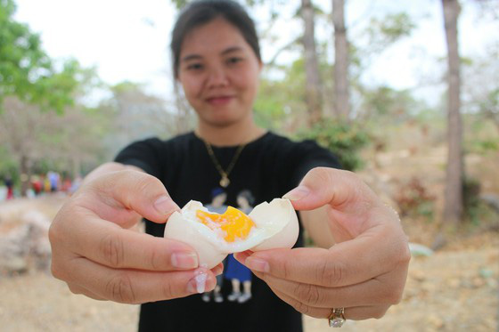 Điều thú vị là trứng gà luộc chín tại suối nước nóng thì lòng đỏ sẽ đặc sánh lại, còn lòng trắng vẫn có màu trong suốt. Còn khi luộc trứng vịt thì sẽ ngược lại, lòng trắng sẽ đặc lại còn lòng đỏ thì sẽ chảy sệt.