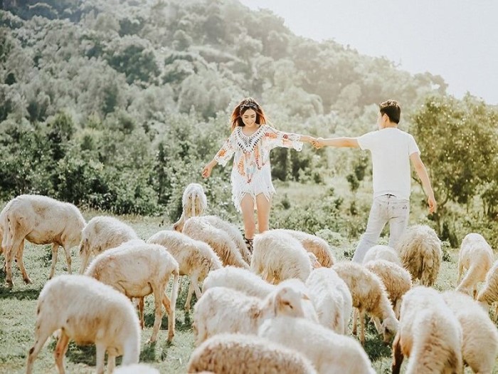 Đồng Cừu Suối Nghệ là địa điểm du lịch cách trung tâm thành phố Vũng Tàu khoảng 40 phút đi xe theo Quốc lộ 51. Đến Suối Nghệ, bạn sẽ thấy không gian thảo nguyên xanh mướt và những chú cừu trắng đáng yêu. Đồng Cừu Suối Nghệ là địa điểm check-in ở Vũng Tàu nổi tiếng với những tấm ảnh như trời Tây. Để có ảnh đẹp kiểu trời Tây, bạn nên đi vào buổi sáng sớm 8 đến 10 giờ, hoặc chiều 3 đến 4 giờ.