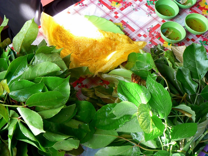 Bánh xèo ăn với rau rừng đặc sản Núi Cấm