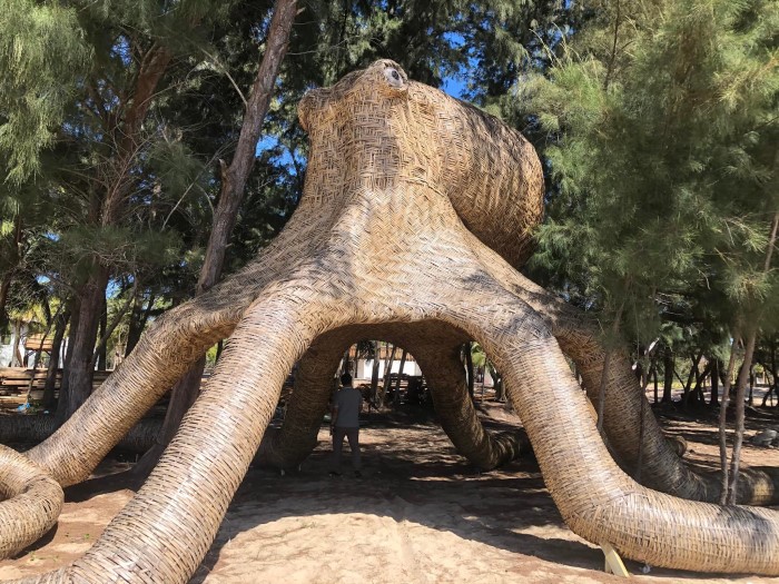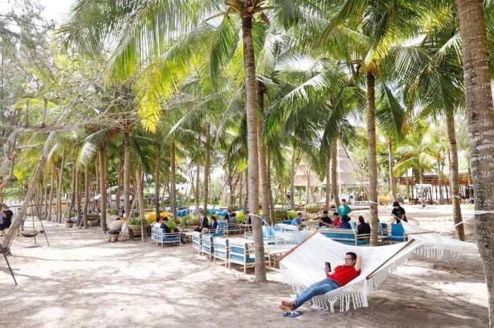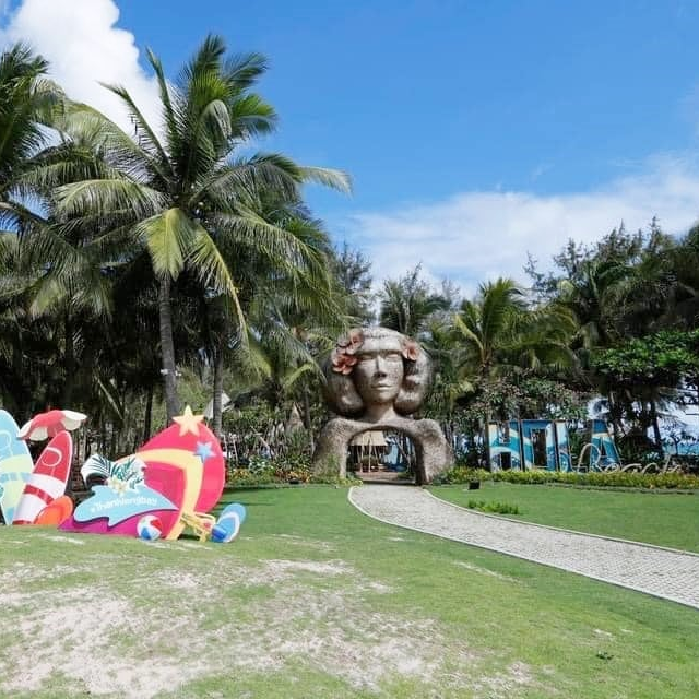 Điểm cộng ở Hola Beach là có bờ biển dài gần 2km, cho bạn thỏa sức tắm và dạo chơi cùng làn nước trong xanh mát rượi. Bãi biển còn có rừng dừa, hàng dương che bóng mát quanh năm mát mẻ cả ngày, lưu trú tại đây bạn có thể ngắm bình minh và hoàng hôn buông xuống trên biển siêu lãng mạn. Bên cạn đó có rất nhiều tiểu cảnh độc đáo cho bạn tha hồ check-in.