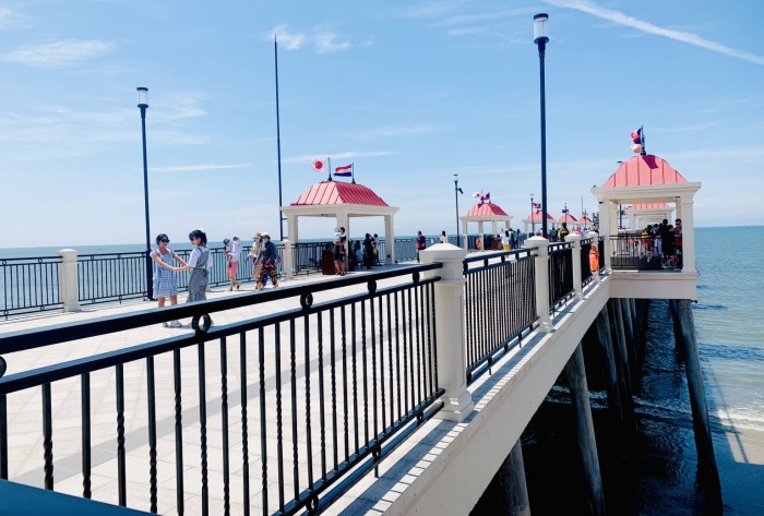 Bên trong bãi tắm công cộng các tổ hợp gồm quảng trường, phố đi bộ, khu vui chơi mua sắm đồ lưu niệm, sản phẩm đặc trưng của địa phương, phố ẩm thực, nhà hàng, cà phê ngoài trời.