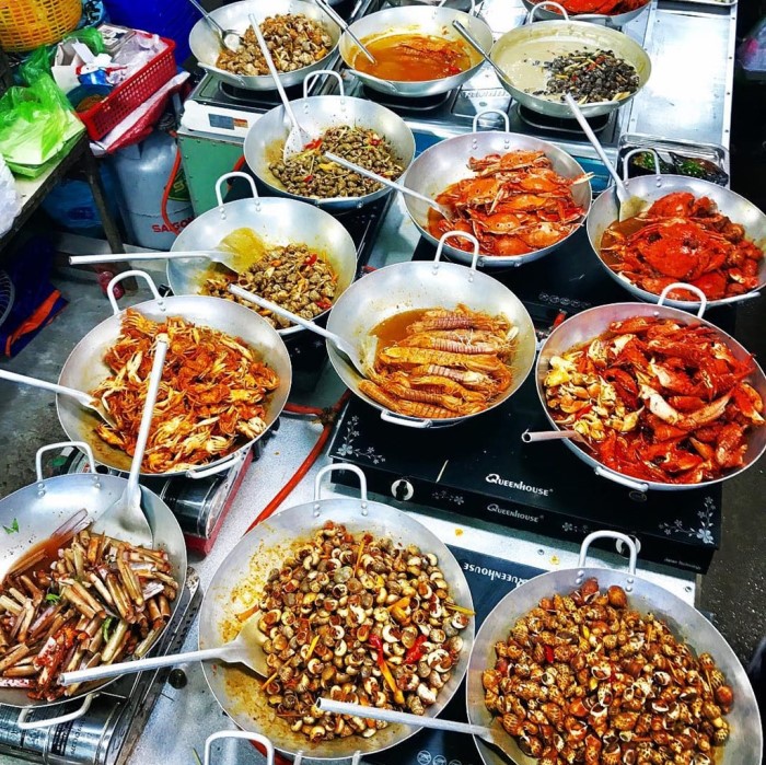 Nằm hai bên tuyến phố đi bộ miễn phí này là hàng loạt các quán ăn, nhà hàng hải sản nối dài san sát nhau tha hồ để bạn lựa chọn.