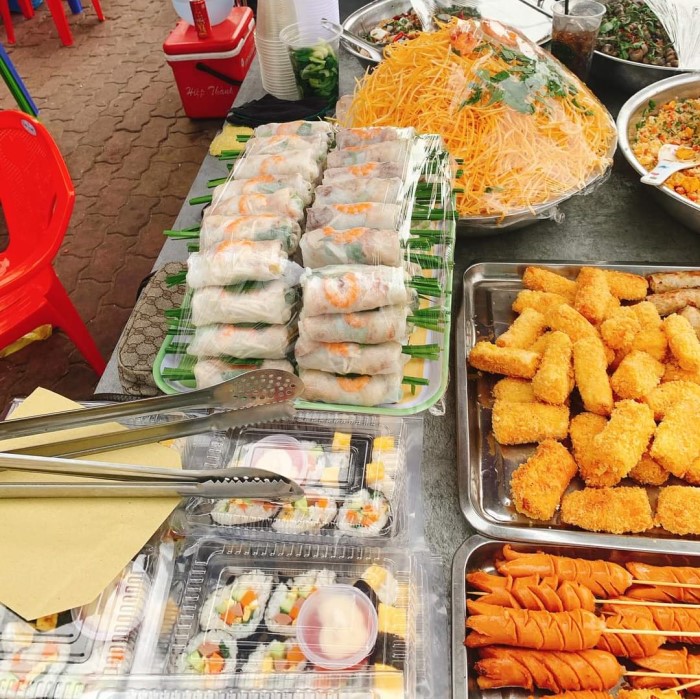 – Bánh tráng dẻo cuốn đầy đủ các loại topping (nem chả, trứng cút, rau các loại…)