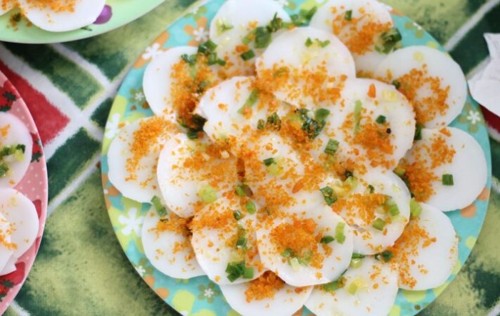 Muốn món bánh bèo được ngon, hãy ăn kèm với sợi đu đu, tỏi, ớt, nước mắm chua ngọt. Ăn gì Vũng Tàu vừa ngon vừa rẻ thì đây chắc chắn là món ăn bạn nhất định phải thử.