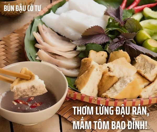 Đến với quán ăn món Bắc ngon ở Sài Gòn này, thực khách sẽ được trải nghiệm trọn vẹn hương vị thơm ngon dân dã thấm đượm tình quê hương của món bún đậu mắm tôm. Nguyên liệu chính của món này gồm có bún lá, đậu phụ rán vàng, chả cốm, bắp bò, mắm tôm vắt chanh, ớt và ăn kèm với các loại rau thơm như tía tô, ngò gai, dưa chuột…