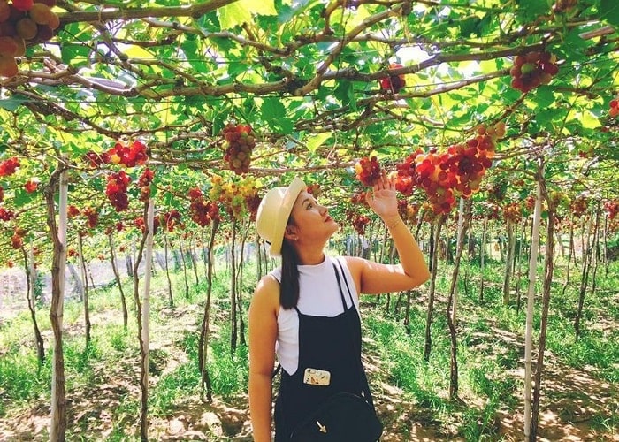 14h30: Xe đến Vườn Nho Quỳnh Thoa, khách tự do cắt nho và dùng thử miễn phí tại vườn. Vườn Nho còn bán những sản phẩm từ nho, khách có thể mua về làm quà ạ. Ngoài ra vườn nho rất mát, khách có thể chụp hình làm kỷ niệm.