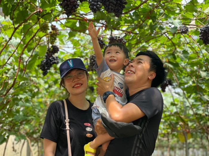Vào cuối tuần, Bình An farm lại có dịp đón những du khách trong và ngoài tỉnh ghé thăm. Khi bạn mang theo trẻ em đến tham quan, các con trẻ có dịp được nhìn thấy các cô chú làm việc trên cánh đồng. Được tự tay hái những chùm nho mà ngày thường mẹ mua cho. Có những giọt mồ hôi vì nắng nóng của Bình Thuận. Nhưng đây cũng là dịp giúp các bạn nhỏ tiếp xúc và biết nhiều điều mới.