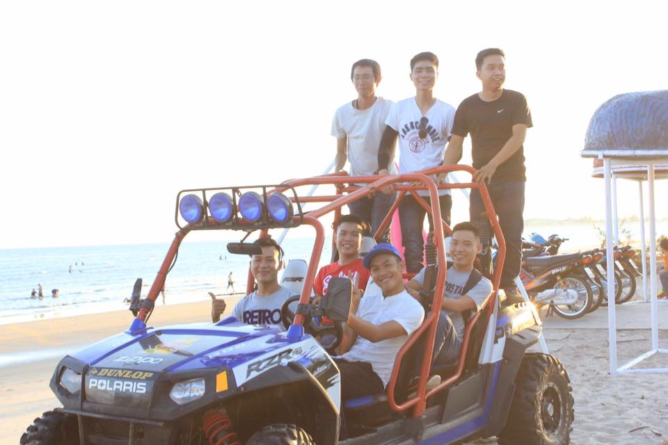 Đến đây, điểm đầu tiên thu hút du khách là chiếc xe “thần thánh” màu xanh dương nằm giữa bãi cát trắng với chức năng duy nhất là làm “cảnh” và phát nhạc.