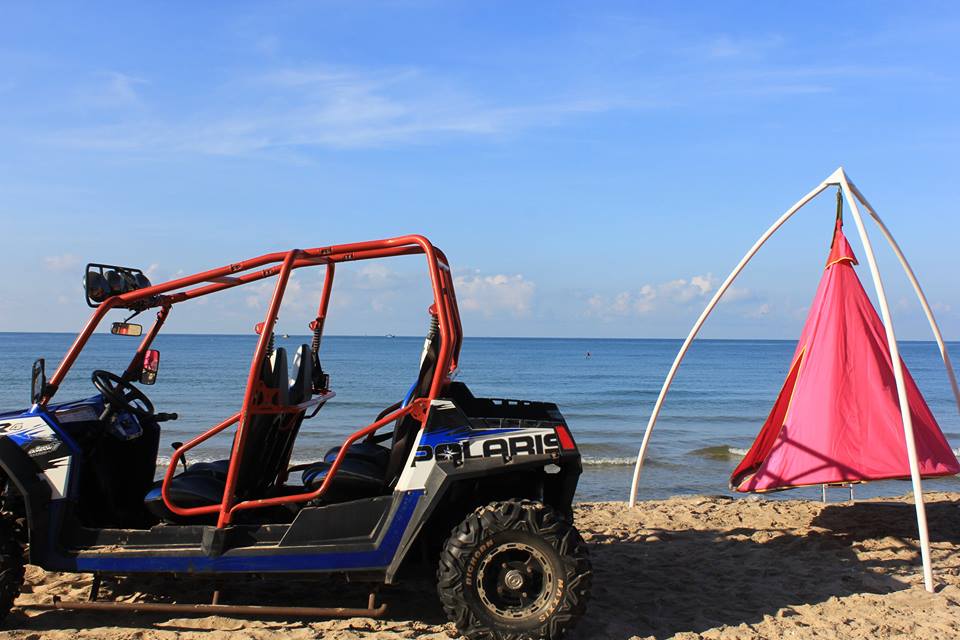 Không lãng mạn kiểu như Coco Beach Camp Lagi, tuy nhiên khi tới đây bạn sẽ được tận hưởng nhiều trò chơi tốc độ và cảm giác mạnh như: Chơi jetski, cano ngắm mũi Kê Gà, lặn ngắm san hô, bắt nhum, dịch vụ xe UTV tự lái.