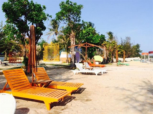 Khu cắm trại còn đặt một số ghế dài và ghế gỗ nhỏ ở khu vực giữa sân để du khách ngồi chơi. Còn có cả những chiếc xích đu bằng vải phù hợp cho một buổi chiều mát ngồi đu đưa tám chuyện cùng nhau. Nếu đi theo nhóm thì còn gì tuyệt vời hơn được ngồi dưới túp lều lớn màu xanh hoặc vàng, vừa trò chuyện vừa ngắm biển.