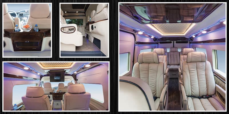 | Private limousine Ho Chi Minh to Mui Ne (9 Seater) Limousine Transit, Limousine Huyndai Solati New limousine 2019 - 2024 air condition Passenger: max 8 pax + luggages Included: Driver, all toll fees, highway fee, water bottle, tissue, wifi |