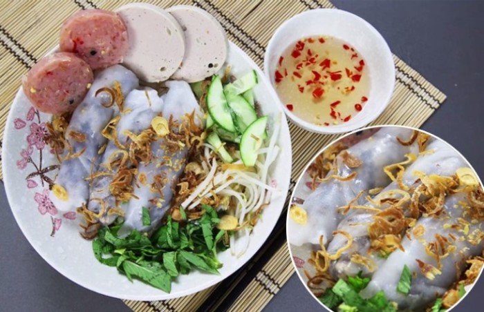 Banh Cuon is a Vietnamese dish, consisting of steamed rice rolls filled with minced pork and mushrooms, and topped with fried shallots and dipping sauce. It's a popular breakfast item in Vietnam, and it's often served with Vietnamese iced coffee.