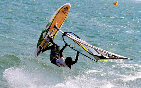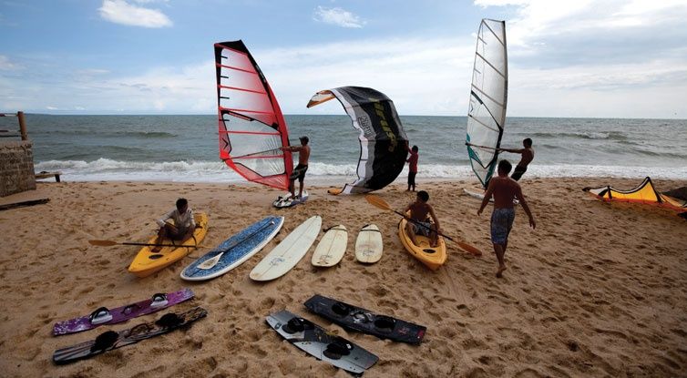 Lướt ván buồm, lướt ván diều (diều lượn) trên biển là một trong những môn thể thao đến với biển Việt Nam theo chân du khách nước ngoài. Biển Mũi Né có được thiên nhiên tuyệt vời với bãi cát dài và những con sóng vừa phải thích hợp cho những ai yêu thích môn thể thao lướt ván buồm trên sóng – một môn thể thao chỉ dành cho những ai đủ can đảm và có một sức khỏe tốt.