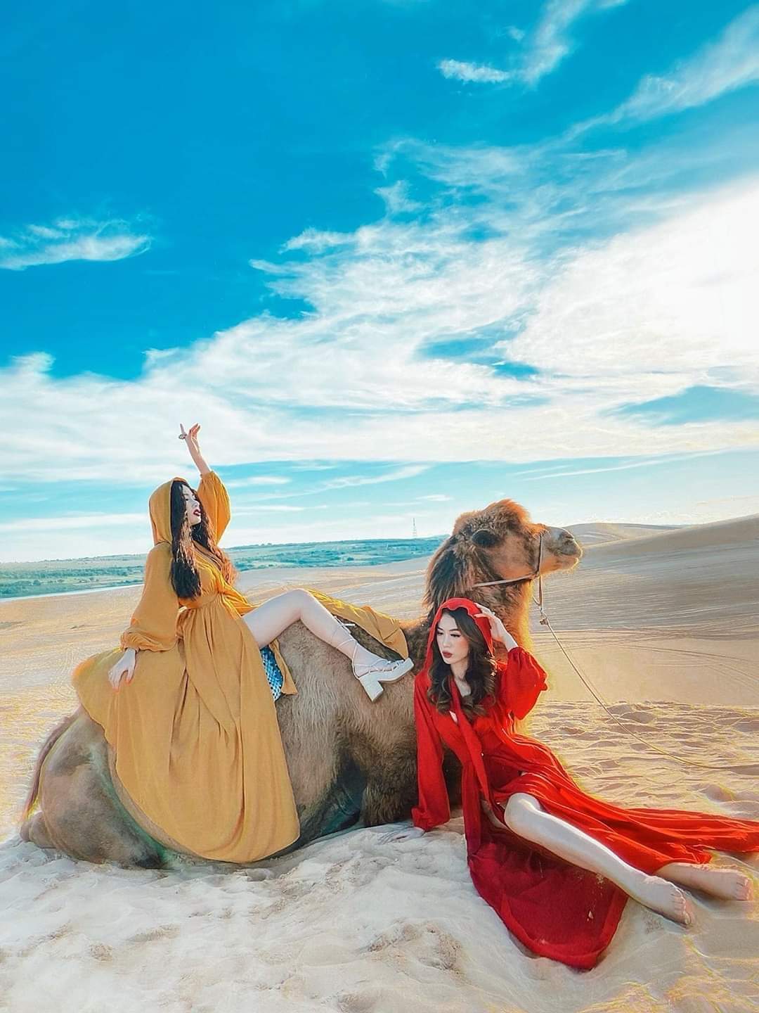 - Để chụp được những tấm ảnh đẹp bên chú lạc đà thì các bạn nên mặc những bộ đầm rộng, màu sắc tươi, hoặc màu trắng thì sẽ rất nổi bật. Nếu bạn không mang theo nhiều trang phục khi đi du lịch thì đến Mũi Né có thể liên hệ Ms Bình Yên để thuê đồ, tại đây cho thuê nhiều trang phục chụp ảnh sống ảo rất nổi bật.