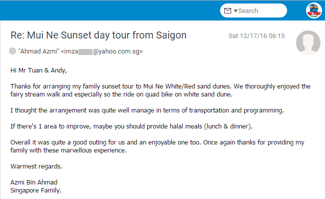 After finish sand dunes tour by jeep, the air conditioned car will transfer back to Ho Chi Minh City. The trip ends at your hotel or at the airport in Ho Chi Minh City.