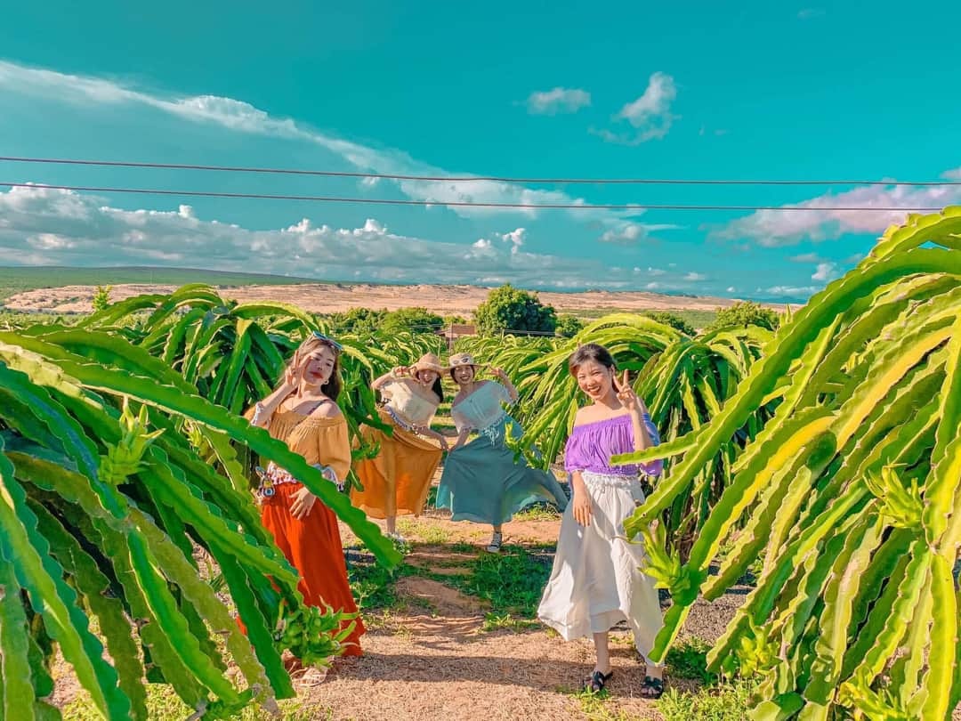 Điểm đầu tiên trong hành trình, xe jeep sẽ đưa quý khách đi một hành trình dài qua eo biển Hòn Rơm và Hòn Ghềnh rồi tiến thẳng ra cung đường Bàu Trắng xã Hòa Thắng, bạn được ghé vào khu vườn thanh long xanh mướt của Mũi Né. Thanh long Bình Thuận đang trở thành điểm check-in mới cho “team sống ảo” thoải mái thả dáng để chụp những tấm ảnh đẹp lung linh. Nếu bạn là người ưa xê dịch, thích khám phá thiên nhiên và luôn mê mẩn với vườn cây hoa lá thì không nên bỏ lỡ địa điểm check-in bình dân nhưng đẹp mê ly này.