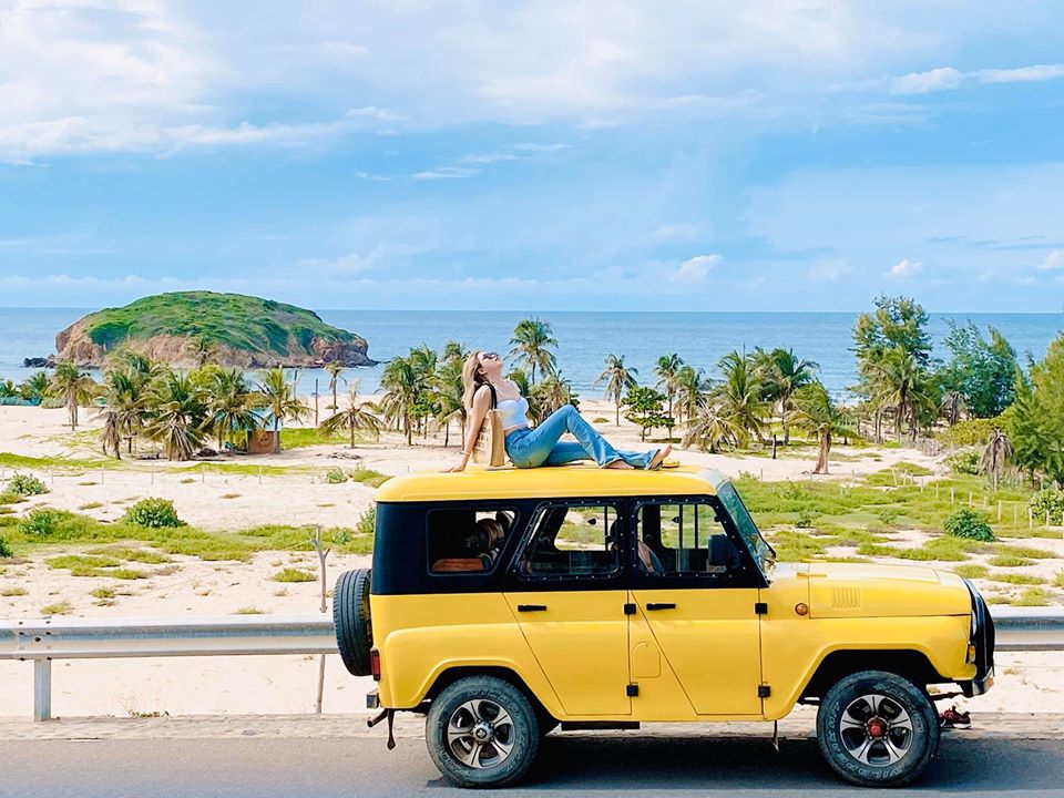 Chụp ảnh với chiếc xe jeep bên cung đường biển
