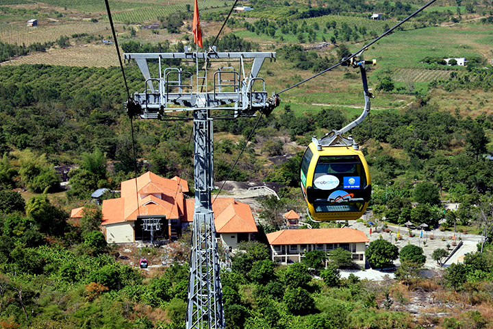 - Cáp treo nối liền từ nhà ga lên điểm lưng chừng của đỉnh núi, chiều dài của tuyến cáp là 1,600m, cao 505m. Từ trong cabin quý khách chiêm ngưỡng khung cảnh của toàn cảnh núi rừng nguyên sinh và vùng đồng bằng với những vườn thanh long trải dài trông thật bắt mắt.