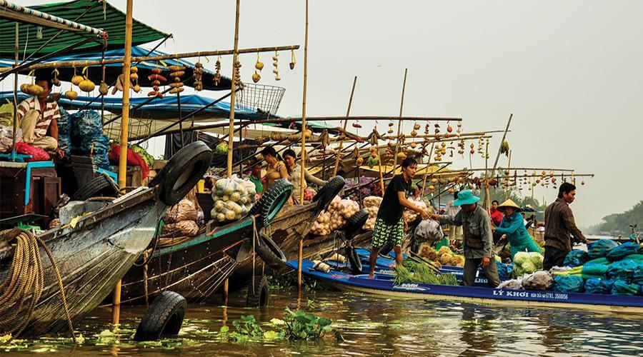 Sau khi ăn sáng tại khách sạn, 7:00h sáng quý khách lên thuyền doc theo hạ nguồn sông Cửu Long thong thả dạo cảnh miền quê sông nước, sau đó đến tham quan chợ nổi Cái Răng, một trong những chợ nổi đông đúc và nhộn nhịp nhất của miền Tây Nam Bộ, trên tàu quý khách sẽ được nghe HDV thuyết minh về quá trình hình thành chợ nổi. Quý khách cũng có thể hòa mình vào không khí của phiên chợ nổi băng cách mua những loại trái cây tại ghe thuyền làm quà hay thưởng thức tai chỗ cũng như giao lưu với dân bản địa.