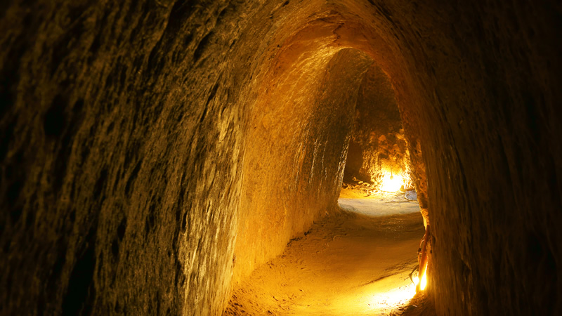 Tham quan Bảo Tàng vũ khí chiến tranh và địa đạo: khoảng 200 km dưới lòng đất, hệ thống hầm chiến đấu, chông mìn tự tạo, bếp Hoàng Cầm – giấu khói khi nấu được sử dụng trong suốt cuộc chiến tranh.
